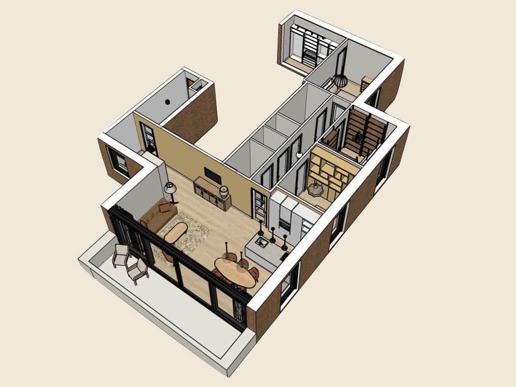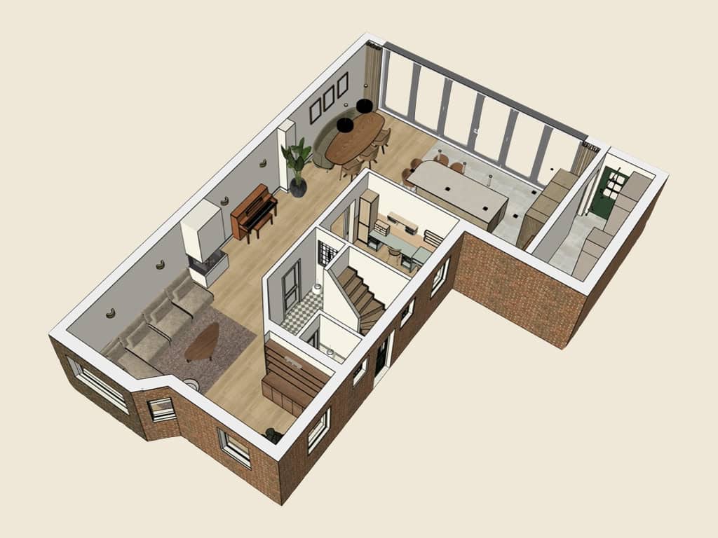 Een 3D-tekening geeft je een realistisch beeld van de ruimte. Het creëert overzicht en helpt je om bewuste keuzes te maken bij de