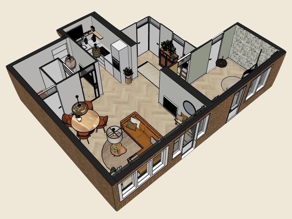 De bewoners gingen verhuizen en betrokken een nieuwe woning die nog volledig moest worden ingericht. Ze waren toe aan een nieuw interieur en wilden graag een harmonieus geheel creëren, maar vonden het lastig om alle keuzes goed op elkaar af te stemmen. Daarom vroegen ze mijn hulp bij het interieuradvies en de inrichting van de hal, woonkamer, keuken en speelkamer.